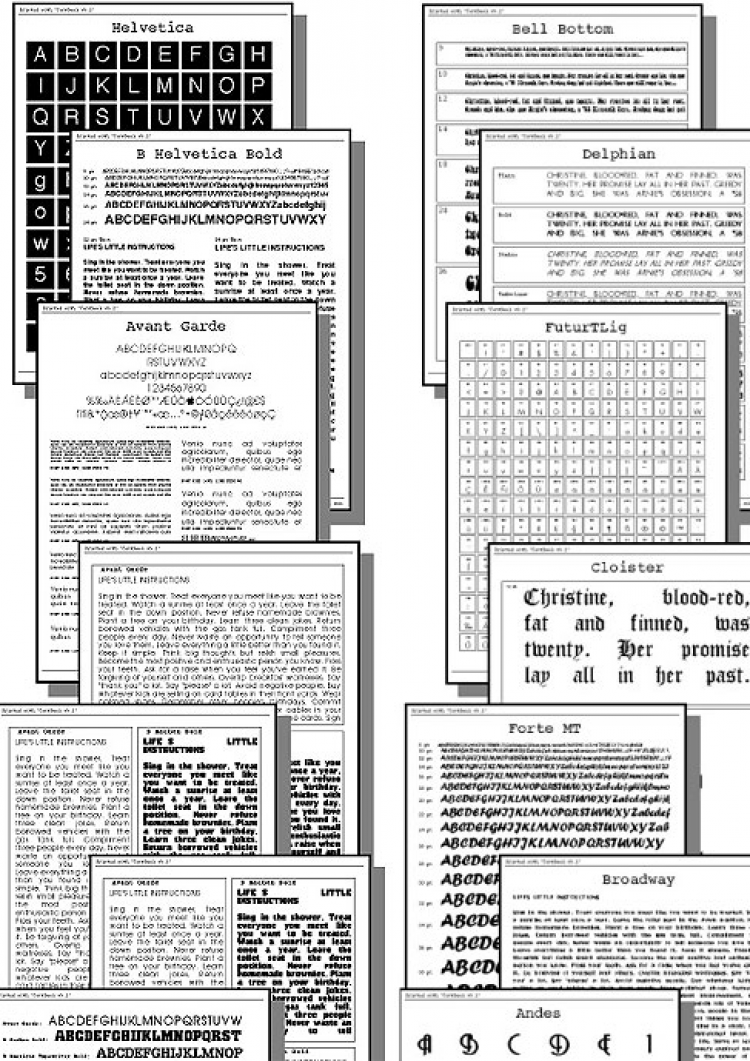 FontBook Программа для подробного просмотра шрифтов. FontBook покажет неустановленные шрифты в окне с использование разных раскладок. Можно распечатать страницу с выбранным шрифтов, чтобы оценить размер и начертание. В FontBook доступно 30 шаблонов для просмотра шрифтов.