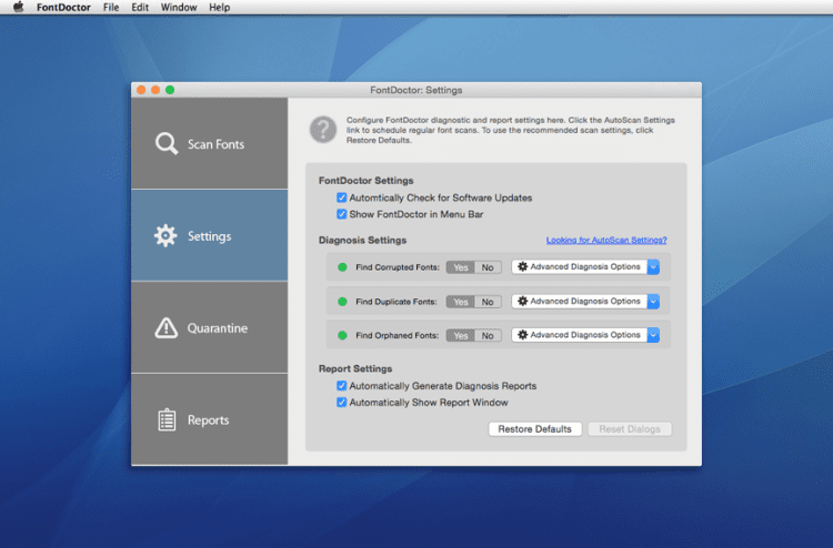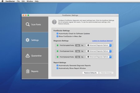FontDoctor сканирует директорию, содержащую шрифты и помогает устранить такие распространенные проблемы, как: недостающие Postscript`ы, повреждения шривтов, смешанные типы шрифтов и т.д.