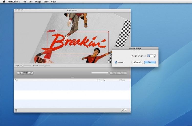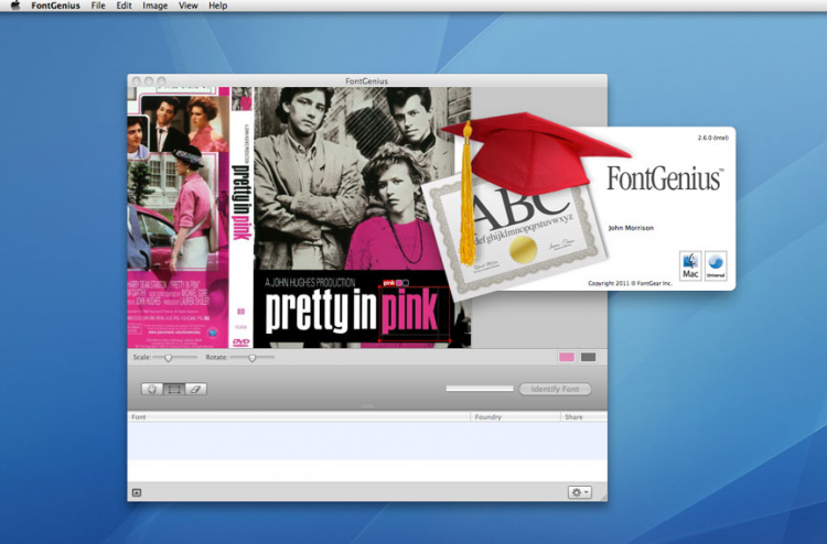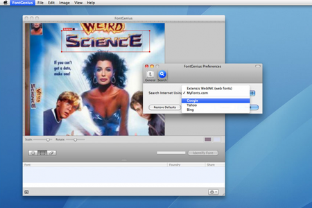 FontGenius Программа для распознавания шрифтов на цифровом изображении. Теперь вам не придется подбирать шрифт "как на картинке" в ручную. Просто натравите FontGenius на изображение, он его проанализирует и определит, какие же шрифты были использованы на картинке. После анализа, программа составит список наиболее похожих шрифтов и сгенерирует набор символов для предварительного просмотра. Так же есть функция поиска шрифтов в интернете, так что вы сможете без труда найти, купить и скачать найденный шрифт.