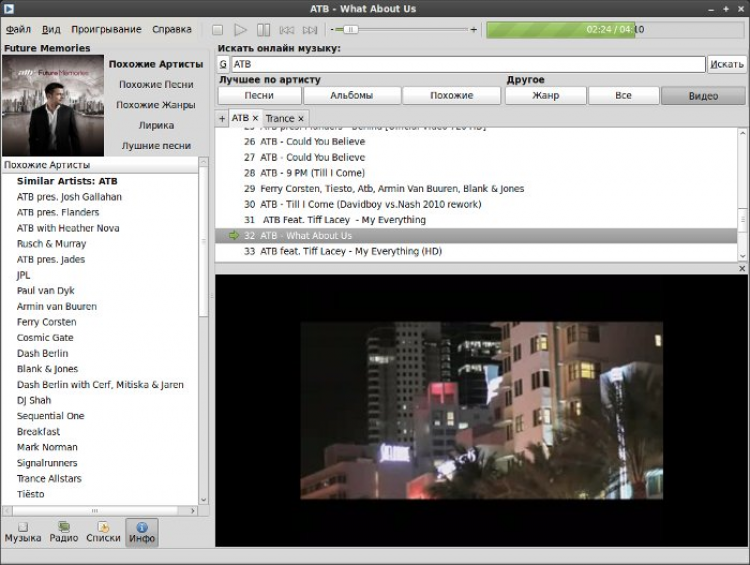 - Возможность просматривать информацию об артисте с lastfm прямо в плеере