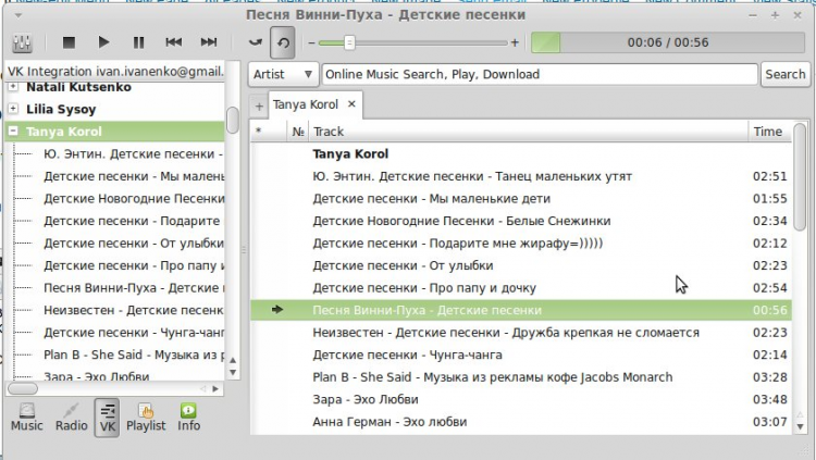 - Умеет искать и проигрывать музыку и видео в интернете (используется ресурс Вконтакте)