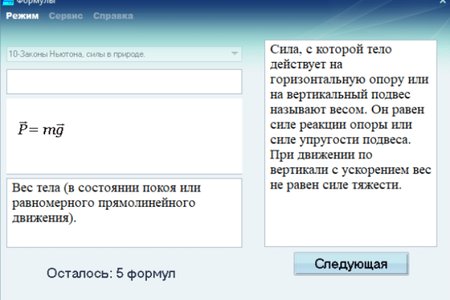 Формулы по физике — интерактивная обучающая программа. Работая с нею можно усвоить основные формулы за курс физики средней школы.