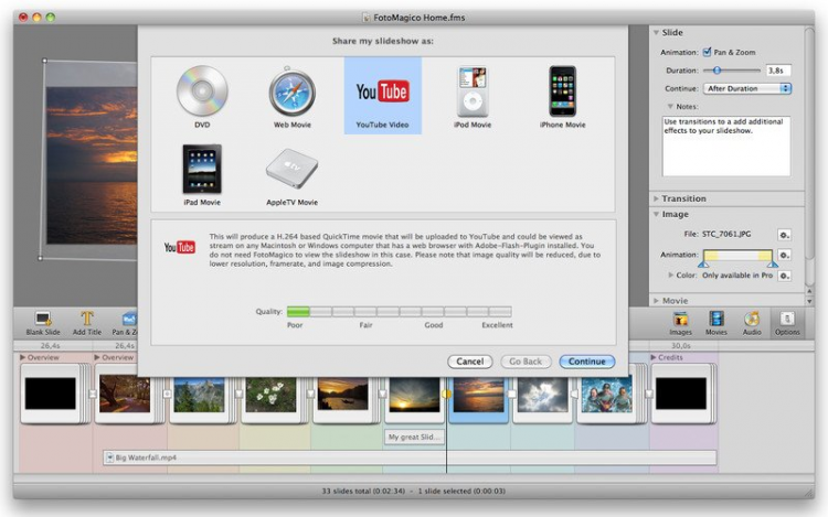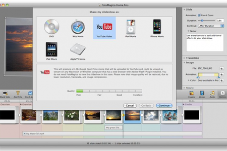 FotoMagico Поможет создать профессиональное слайд-шой с музыкальным сопровождением. FotoMagico обладает приятным и понятным интерфейсом, которые поможет создать замечательную презентацию из ваших фотографий. Выбрав одну фотографию вы сможете ее вращать, изменять размер, зумировать и т.д. В программе есть множество эффектов перехода от одной фотографии к другой.