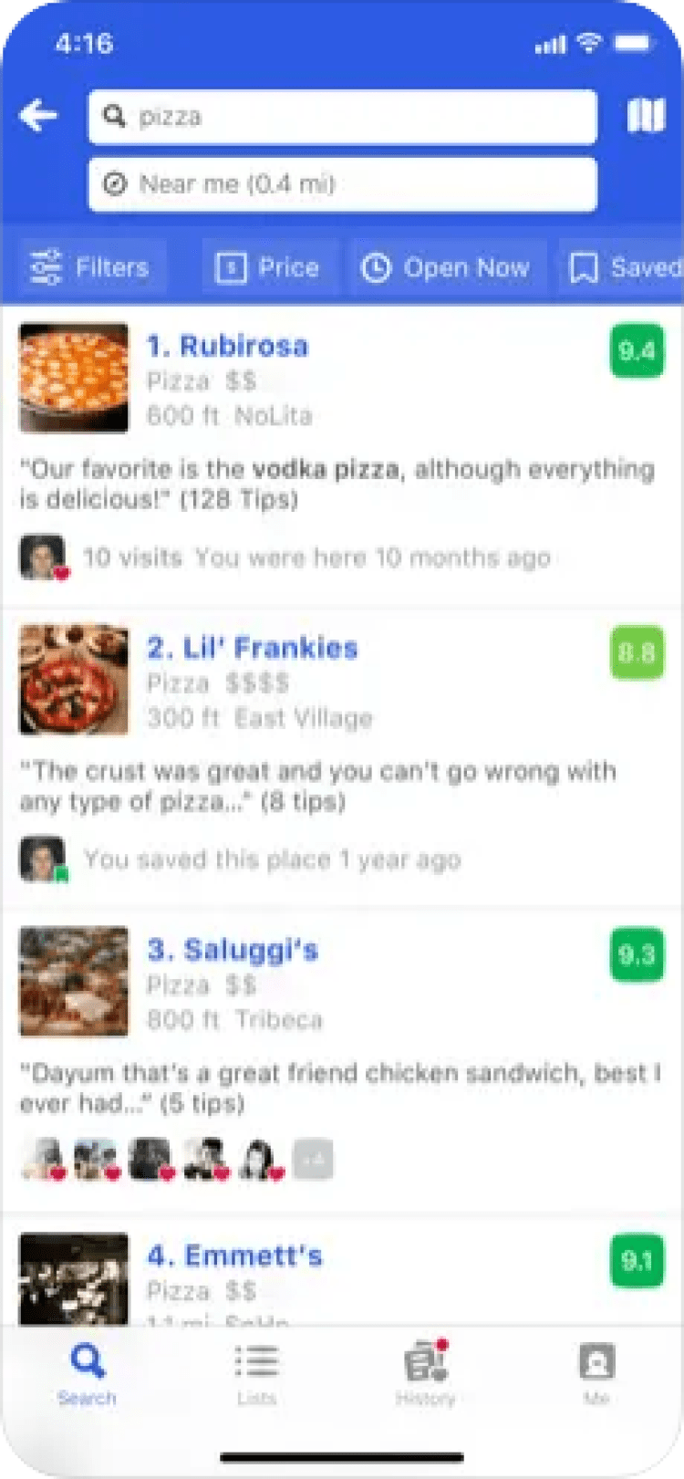 Приложение Foursquare запоминает и понимает ваши вкусы. Каждый новый поиск будет учитывать ваши оценки тех или иных заведений, а также ваши любимые места или места ваших друзей. В итоге, вы получите список только тех заведений, которые могут вам понравиться.