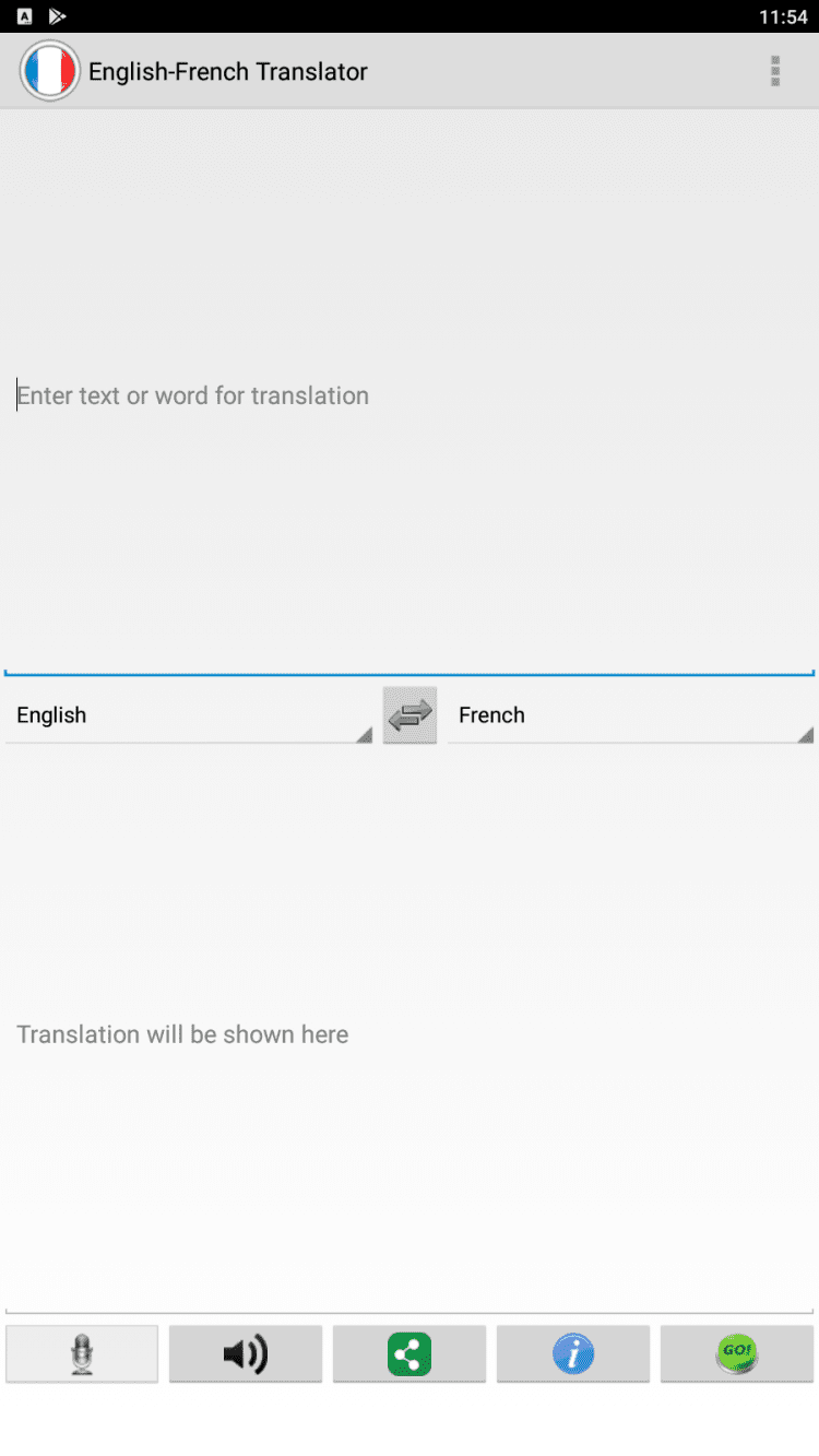 Французский переводчик Бесплатный переводчик с французского языка, который использует Google Translate. Переводчик поддерживает англо-французский и французско-английский перевод. Используйте переводчик как для отдельных слов, так и для отдельных фраз. Введите текст в переводчик и нажмите кнопку GO.