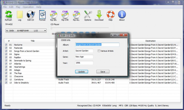 Free CD Ripper - это очень простая в обращении, маленькая и бесплатная программа для "риппинга" AudioCD в МР3-формат. Внимание! Загружать Free CD Ripper у нас безопасно:Все файлы FreeSoft ежедневно сканируются антивирусом.