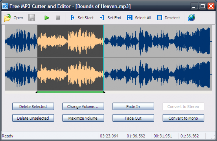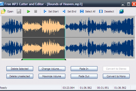 С помощью этого редактора вы сможете быстро отредактировать любой MP3 файл. Free MP3 Cutter and Editor позволяет визуально выделять нужный фрагмент трека, удалять его или не выделенную область. Кроме этого в редакторе доступны функции изменения уровня громкости и наложения эффектов усиления или затухания. Free MP3 Cutter and Editor также позволяет конвертировать Mono звук в Stereo и наоборот.