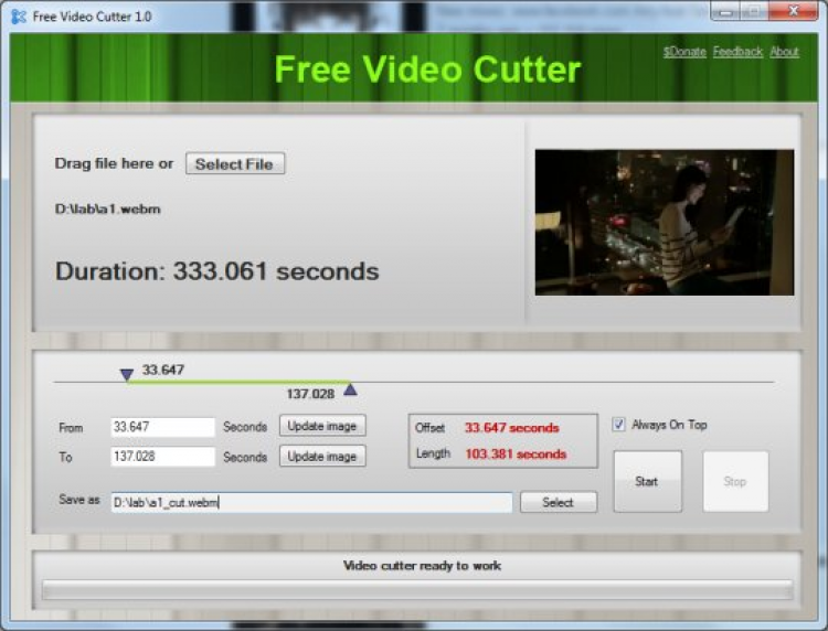 Free Video Cutter - это программа для нарезки видео файлов. Обладает удобным интерфейсом и проста в использовании.