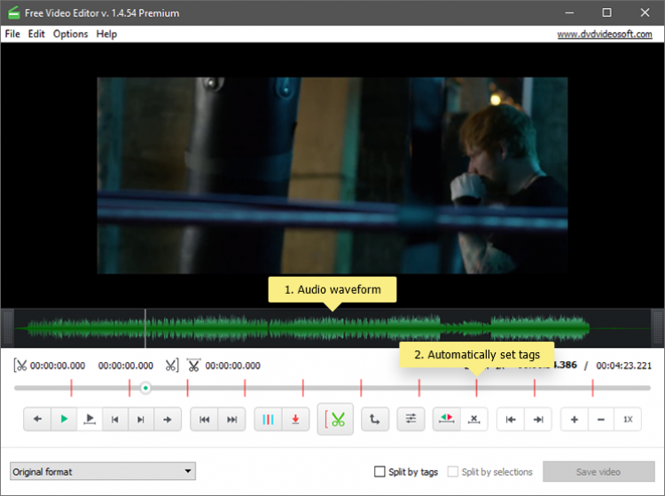Free Video Editor - это бесплатный видеоредактор для Windows, с помощью которого можно легко и быстро убрать из видео ненужные части без перекодирования файла. Это означает, что она не ухудшает оригинальное качество и работает быстрее других. Поддерживается видео в формате .avi, .mpg, .mp4, .mkv, .flv, .3gp, .webm и .wmv.