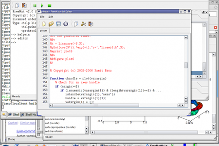 FreeMat Свободная среда для численных вычислений и язык программирования. Имеет интерфейс к внешнему коду на C, C++, и Fortran, а также коннективные алгоритмы (через MPI), построение графиков и трехмерные визуализации.