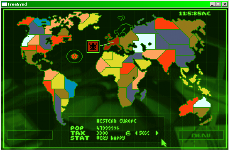 FreeSynd Бесплатный кроссплатформенный ремейк популярной игры Syndicate. Это компьютерная игра, совмещающая стратегический и тактический элементы. Стиль игры — киберпанк. Вид тактического экрана: изометрический от третьего лица. Сюжет игры: Будущее. Мир разделён на зоны, находящиеся под контролем синдикатов, чья власть поддерживается «чипами» виртуальной реальности, вживленными в мозг граждан и подменяющими окружающий мир иллюзией. Конфликты между синдикатами при переделе зон влияния принято решать с применением отрядов боевых киборгов. Игроку предстоит возглавить один из синдикатов и при помощи кибернетических отрядов силой захватить контроль над миром. Игра состоит из двух частей: стратегической и тактической. Для игры необходимы оригинальные файлы ресурсов.