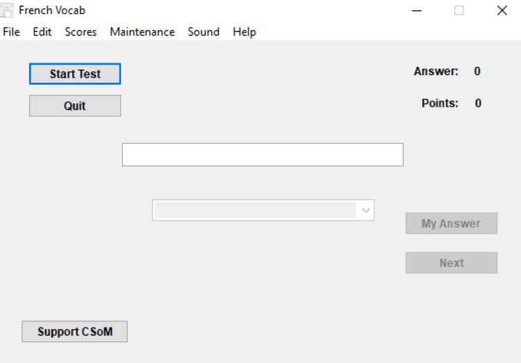 French Vocab - это программа, созданная для того чтобы помочь вам быстро и весело увеличить свой словарный запас французского языка. Встроенный список содержит более 1000 французских слов и словосочетаний. Принцип работы простой: программа показывает вам слово на французском, и вам нужно выбрать тот вариант перевода, который кажется вам правильным.
