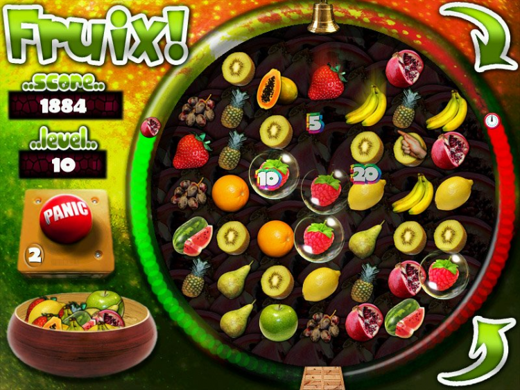 Fruix Довольно сложная игра, в которой вам придется избавляться от фруктов. Составляйте одинаковые фрукты в ряды, чтобы они покинули игровое поле. Основная сложность в том, что нужно, чтобы за ход игровое поле покинуло хотя бы два фрукта, иначе часть упадет за край поля.