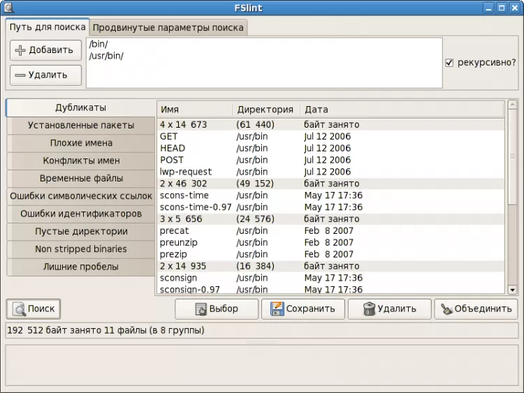 FSlint может работать как консольное приложение, а также имеет простой, легкий и удобный графический интерфейс.