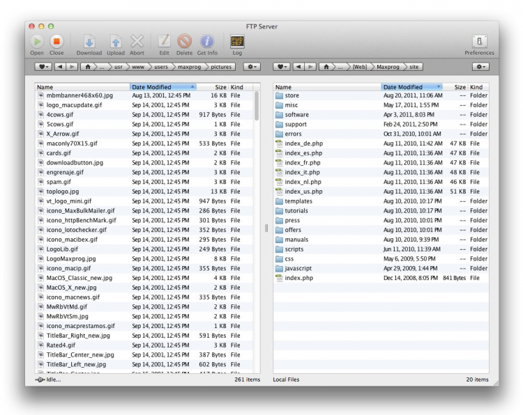 FTP Disk Простой и удобный FTP-клиент, который позволит загружать файлы на сервер так же легко, как и копировать их с диска на диск. Двухпанельный интерфейс FTP Disk позволит загружать файлы на сервер просто перетащив их на списко файлов с нужной директории. Колличество серверов, с которыми может работать программа не ограничено. FTP Disk позволит пользователям просматривать и создавать файлы и папки на сервере, скачивать и загружать их, редактировать текстовые файлы с помощью встроенного редактора, просматривать изображения и изменять права.