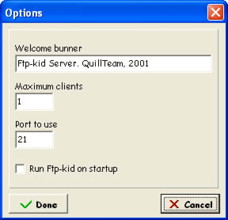 Ftp-kid - это маленький и удобный фтп-сервер, со всеми необходимыми настройками и функциями. Программа дает возможность настраивать для каждого пользователя отдельный каталог и позволяет установить "только чтение" для любого клиента. Есть возможность временно отключить любого пользователя, не удаляя его из списка. Вы можете вести log и сортировать его, как для всех пользователей сразу, так и для каждого в отдельности. Ftp-kid имеет приятный и очень простой интерфейс.