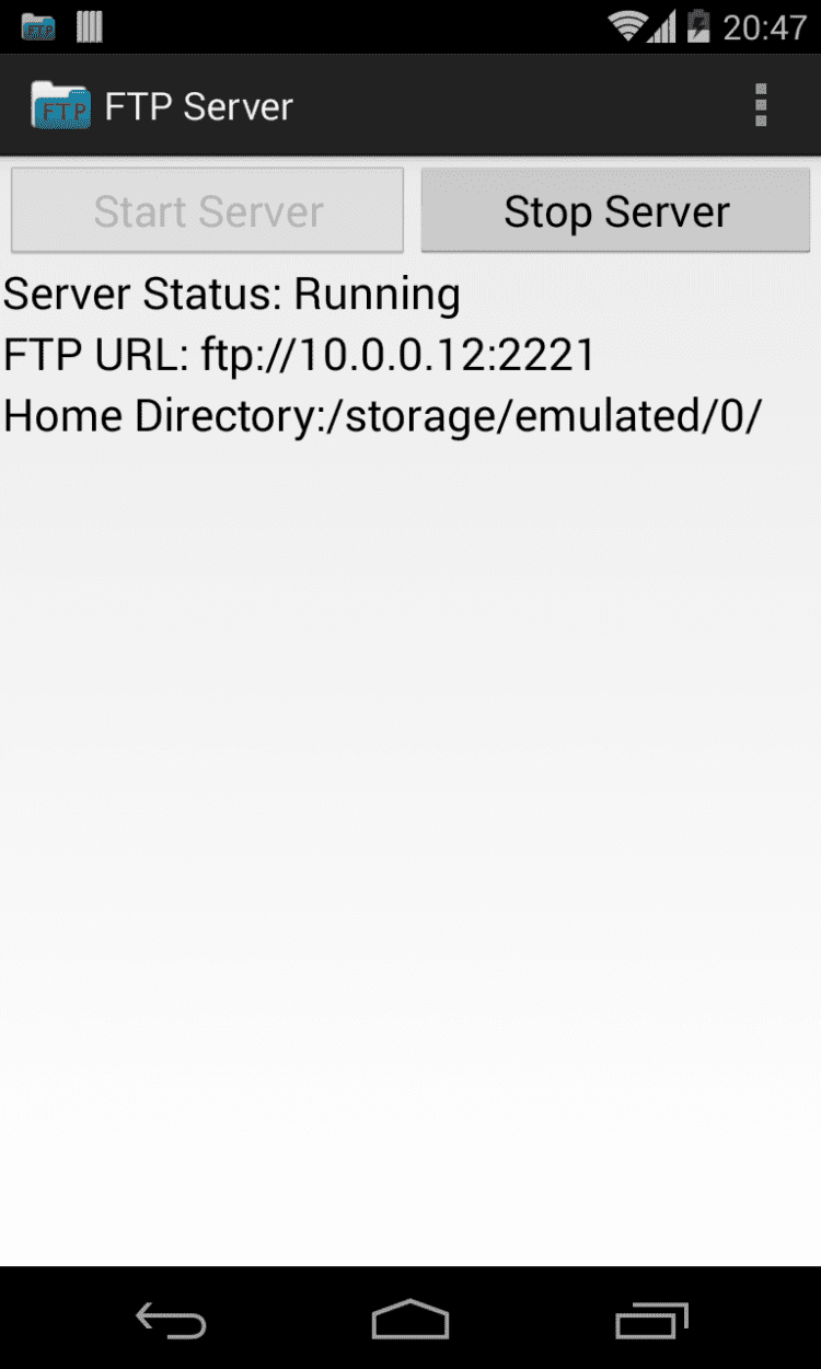 FTP Server — это удобный FTP-сервер, с помощью которого вы сможете получать доступ к карте памяти вашего устройства с других устройств, а так же ПК. Эта программа позволит управлять файлами, папками, фотографиями, видео, документами и прочими данными удаленно. Для этого необходимо подключиться к локальной WiFi сети и запустить FTP сервер на своем устройстве. Получить доступ к файлам вы сможете через браузер, или при помощи FTP клиента.