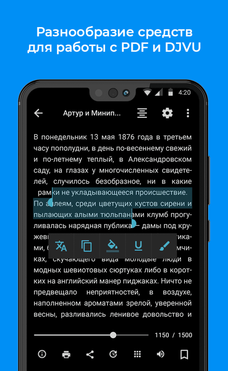 Добавляйте свои любимые библиотеки и скачивайте нужные электронные книги непосредственно в приложении. - Настраиваемая панель инструментов.