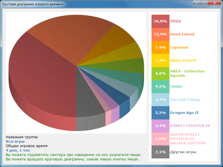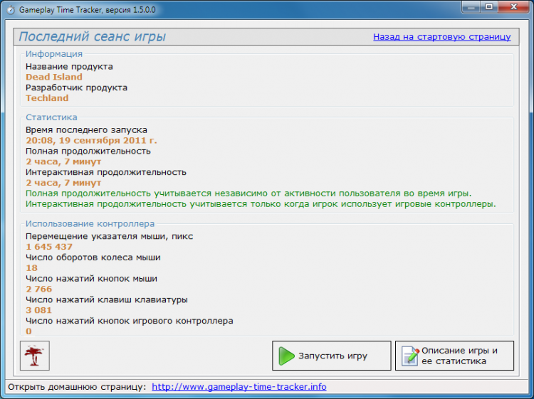 - Информация обо всех играх, в которые вы играли с момента установки этой программы (число запусков, продолжительность последнего сеанса игры, общая продолжительность; использования игры);