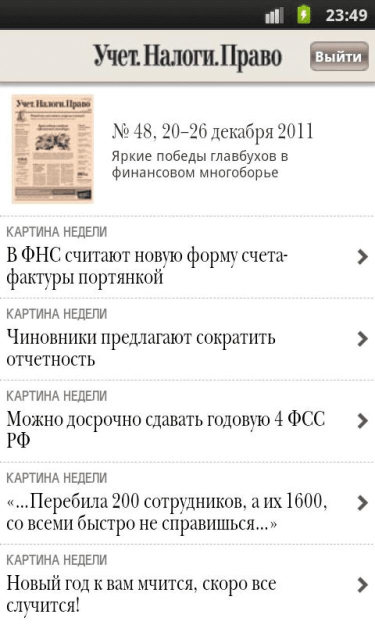 Газета «Учет. Налоги. Право» Еженедельная профессиональная газета. Каждую неделю – все новое в работе. Коротко, ясно и по делу. Никаких азбучных истин. Вы будете в курсе того, что еще задумала налоговая инспекция: только у газеты есть доступ к внутренним документам ФНС. Вы получите подспорье для профессионального роста: газета рассказывает не только про налоги и бухучет, но и про налоговое планирование, управленческий учет, МСФО, финансово-экономический анализ.