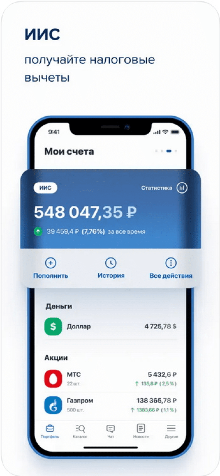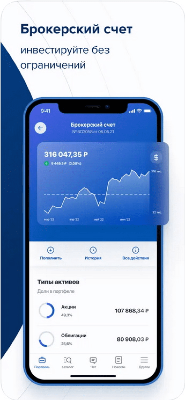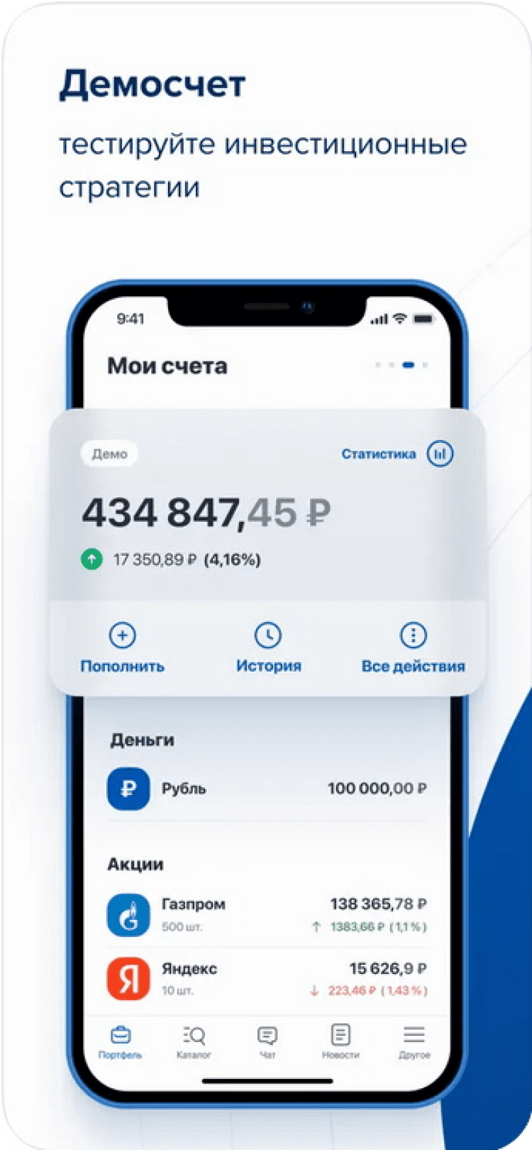 Благодаря этой программе, вы получите доступ ко всем финансовым инструментам, торгуемым на Московской Бирже, сможете управлять своим инвестиционным портфелем и отслеживать его состояние, прямо с экрана мобильного телефона. Зарегистрируйтесь и откройте брокерский счет с бесплатным обслуживанием, а затем начните торговать на фондовом рынке, с минимальной комиссией за операцию. Не уверены в своих силах? Тогда откройте бесплатный демосчет и получите необходимые навыки, не рискуя реальными деньгами.
