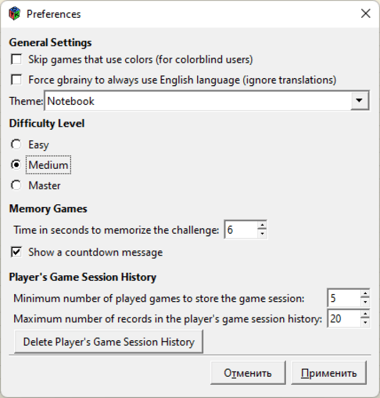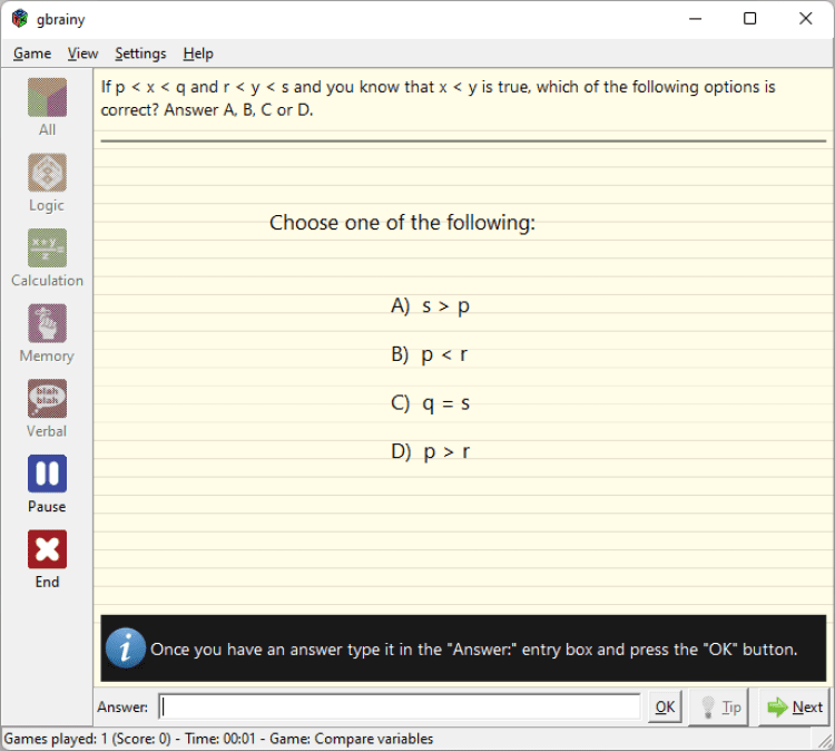 GBrainy - это игра с открытым исходным кодом, которая развивает память, внимательность и логику.