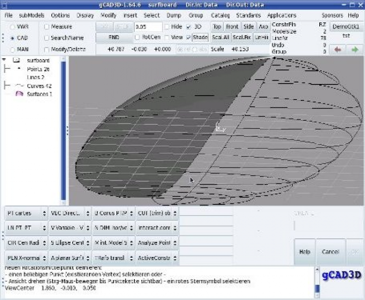 Кроме этого в gCAD3D имеется встроенный просмотрщик 3D файлов, основанный на библиотеке OpenGL.