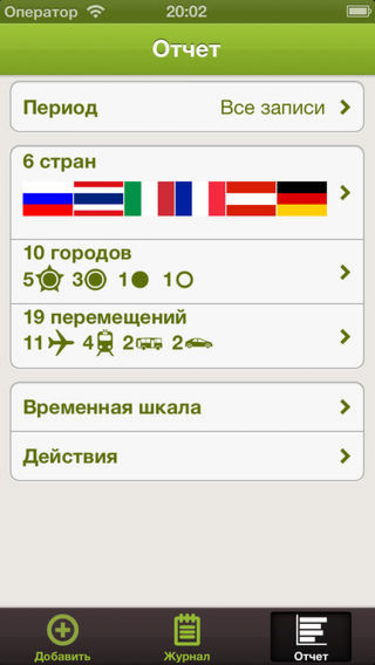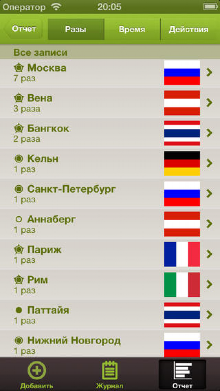 Где был, что делал Приложение для просмотра статистики о ваших путешествиях и занятиях в них.