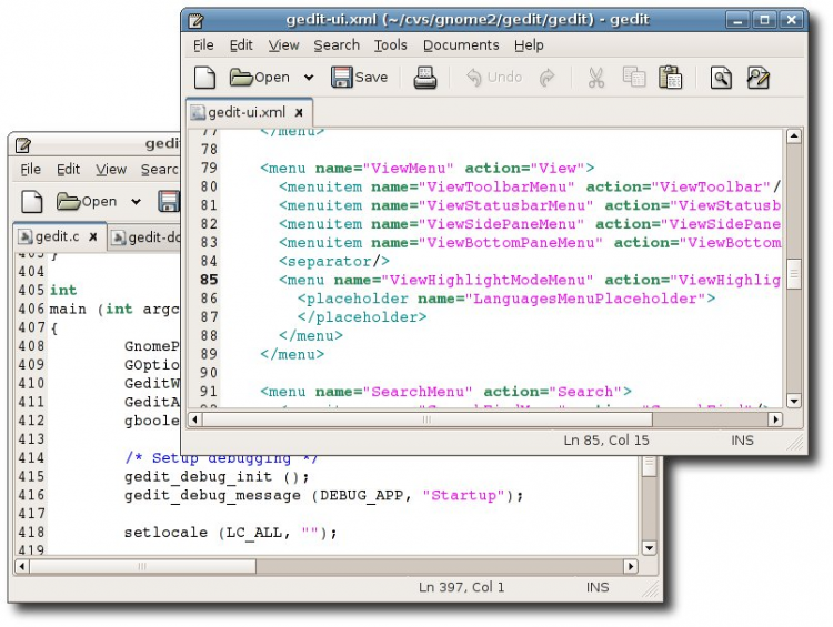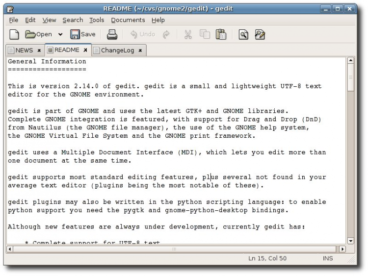 gedit Стандартный текстовый редактор из среды Gnome, с открытым исходным кодом и широким набором функций.