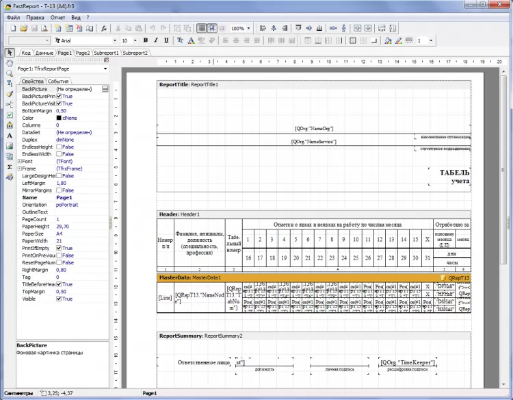 - возможность печати табелей по формам Т-12, Т-13, а также по форме программы с детальным подсчетом количества отработанных часов и дней по различным кодам;