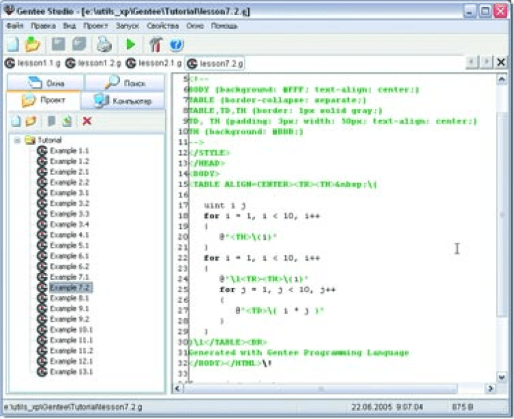 Gentee - это дружественный полнофункциональный язык программирования. Надежный помощник в повседневной работе. Прост в изучении и может быть как первым, так и вашим десятым языком программирования. Имеются документация, примеры и набор библиотек. Разработчики программ могут легко использовать его в своих приложениях. Компилятор и виртуальная машина в одной DLL занимают 120 КБ. Gentee - это бесплатный язык программирования. Вы не платите ничего за его использование (в том числе в своих приложениях). Gentee - это мощное средство для автоматизации различных операций.