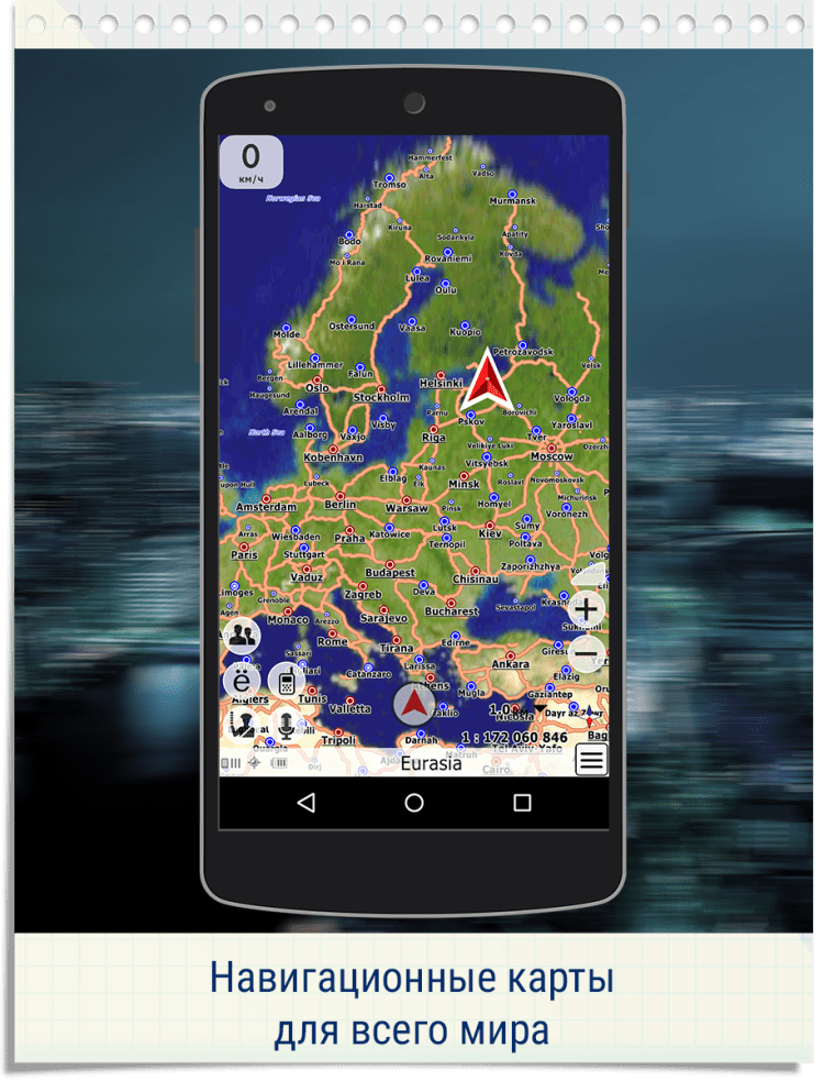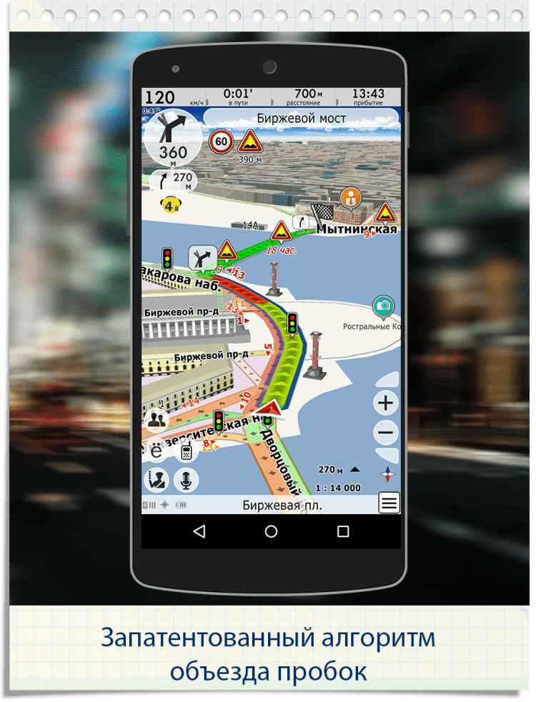 Удобный оффлайн GPS-навигатор, который позволяет использовать навигационные карты Nokia, OSM, СитиГИД или карты национальных производителей. Эта программа обладает высокой скоростью построения маршрутов, позволяет производить ежедневные обновления и коррекции карт, а так же использует алгоритм "Пробки-2", с помощью которого вы сможете видеть направление пробок, а в случае отсутствия данных о пробках - просматривать статистическую информацию о заторах. Так же, эта программа предупредит вас об опасности на дорогах, об установленных радарах ГИБДД, позволит обмениваться сообщениями с друзьями и отслеживать их перемещения, использовать встроенную рацию и быстро вызвать эвакуатор или другие экстренные службы.