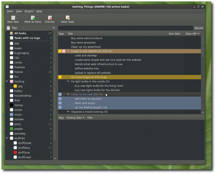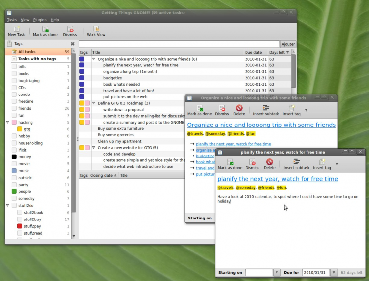 Getting Things GNOME! Персональный органайзер, который позволяет вести список ваших дел и задач.