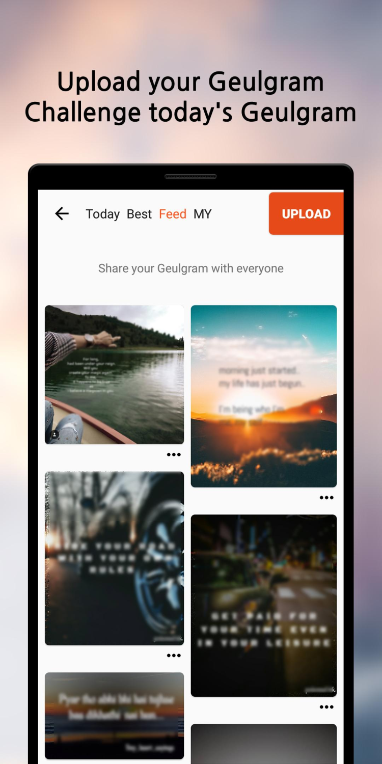 Geulgram — это мобильная программа для создания картинок с вдохновляющими цитатами или любыми другими текстами. Поможет создать качественный контент для соцсетей или просто выразить мысли необычным способом.