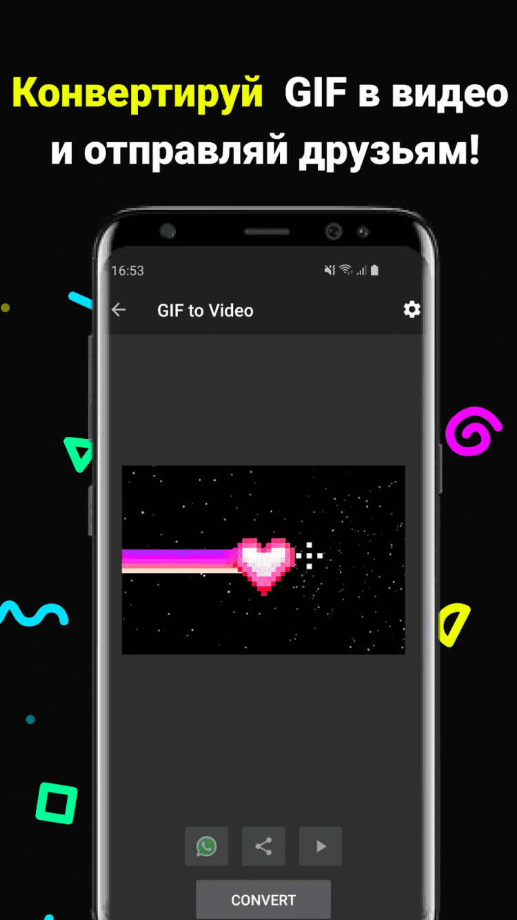 GIF to Video — это простой в использовании конвертер GIF-файлов. Позволяет быстро превратить анимации в видеоролики и поделиться ими с друзьями через мессенджеры и социальные сети.
