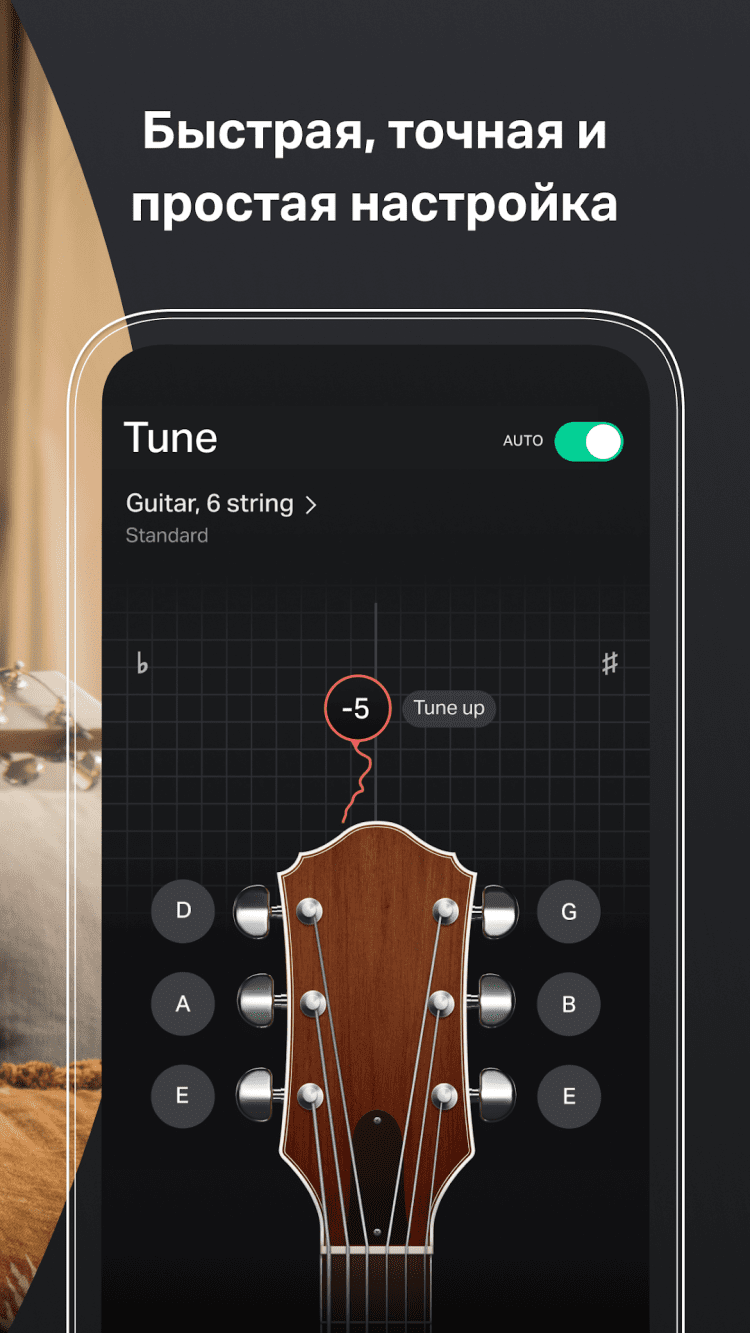 Guitar Tuna - топовое приложение для настройки гитары и других струнных инструментов с помощью Android смартфона.