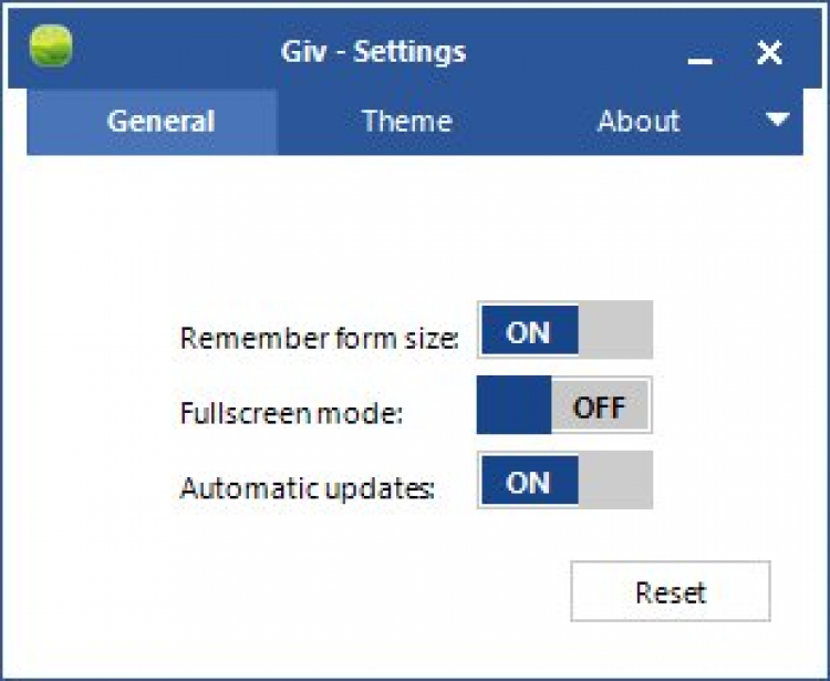 Giv - маленькая утилита, предназначенная для просмотра анимированных изображений в формате GIF. Giv позволяет ставить анимацию на паузу и сохранять отдельные кадры из нее. В ней нет сложных настроек, но есть темы оформления и возможность простора GIF-изображений в полноэкранном режиме.