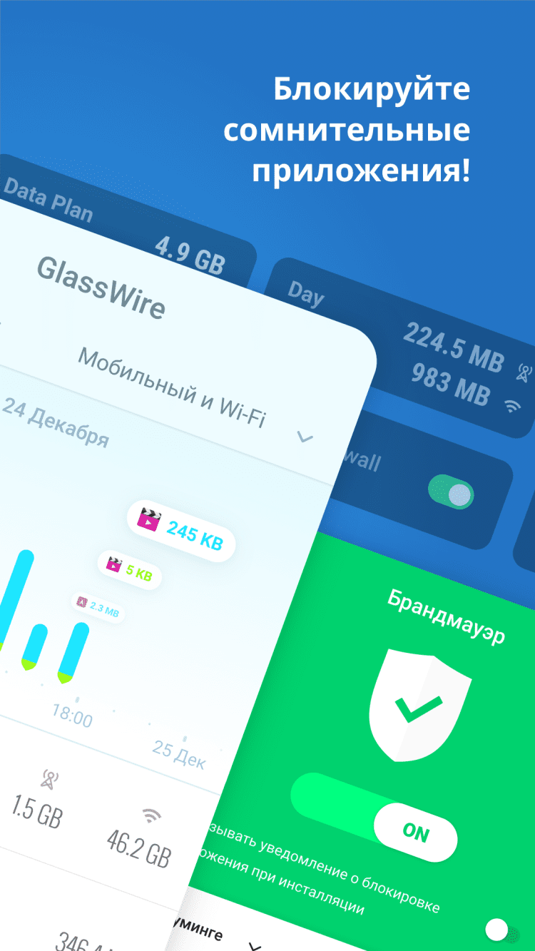 GlassWire — это программа, предназначенная для контроля обмена данными через мобильные сети и точки доступа Wi-Fi.