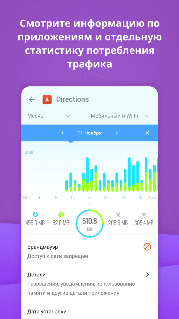 - Оцените насколько активно различные приложения используют интернет-трафик на вашем гаджете. Графики строятся в режиме реального времени.