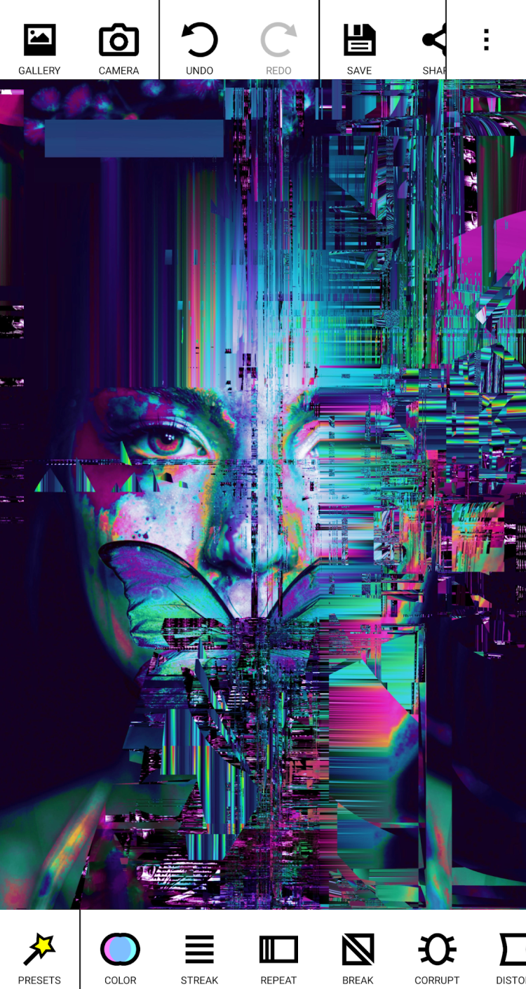 Вы можете комбинировать их по своему вкусу и пользоваться неограниченной функцией повтора/отмены. Что еще важнее, с помощью этого приложения вы можете создавать уникальные видео и применять к ним эффекты глитча.