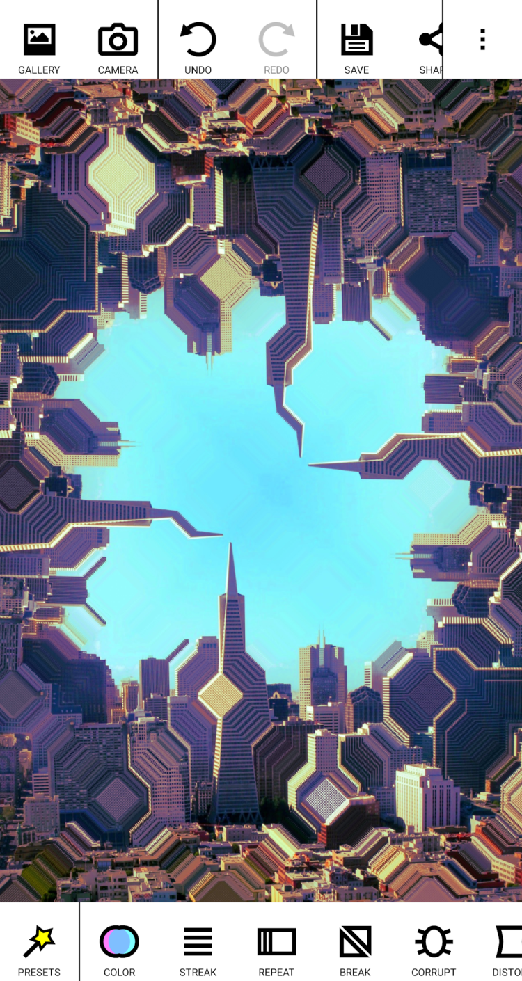 Glitch Lab — это забавное и необычное приложение для редактирования фотографий для Android. В отличие от популярного программного обеспечения, похожего на Photoshop, оно не требует изучения всех этих настроек и инструментов. Просто используйте и настраивайте многочисленные эффекты, которые придадут вашим фотографиям уникальный поврежденный вид.