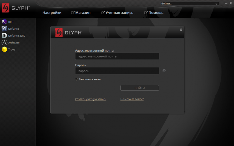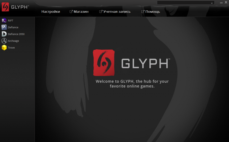 Glyph - это игровой центр от Trion Worlds. С его помощью, вы можете быстро скачивать игры компании и с удобством управлять ими в одном окне.