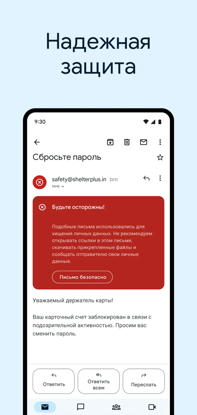 Ещё одной приятной особенностью Gmail является надежная защита от спама. Встроенный фильтр способен с высокой точностью определить нежелательные письма и переместить их в специальную папку для спама. При этом, вы не будете получать отвлекающие уведомления о заблокированных письмах.