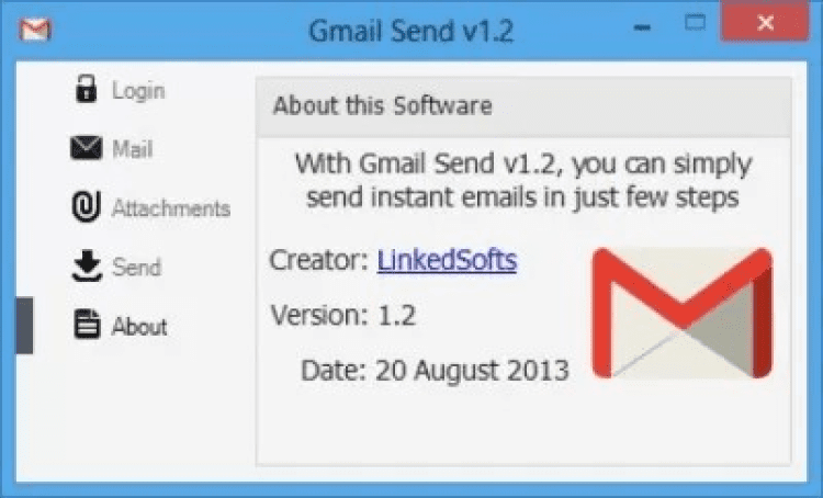 Gmail Send очень проста в использовании, не требуется дополнительных настроек, но для работы с ней нужно ввести логин и пароль от "учетки" в Google. Программа позволяет отправлять обычные письма или с вложениями. Для отправки письма нужно только указать адрес получателя, тему письма и, конечно же, сам текст письма.