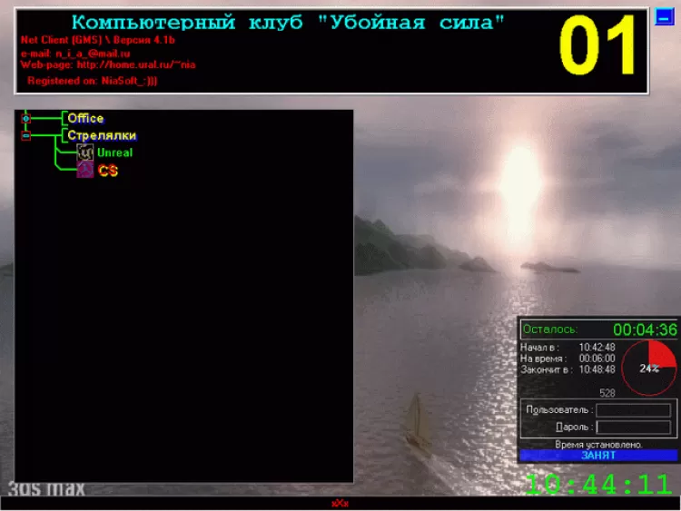 GMS - GaMe Server - это один из лучших, программных пакетов для администрирования игрового зала; Уровни доступа, возможность клиенту по карточке самому себе поставить / добавить время или закончит работу раньше, вычитание стоимости интернета из времени, удаленный мониторинг и многое др.