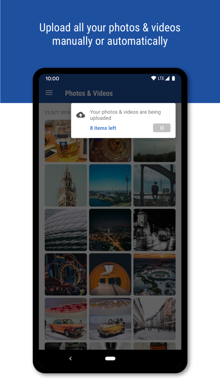 - функция автоматической загрузки фотографий и видео