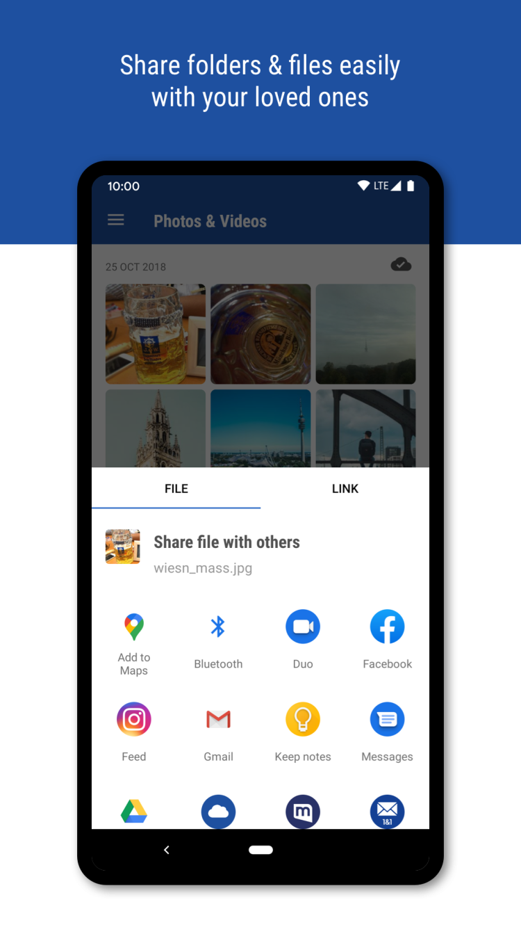 GMX Cloud — это облачное хранилище для любых данных с мгновенным доступом с вашего смартфона или планшета. Оно обеспечивает безопасный и удобный способ хранения, доступа и обмена файлами. Независимо от того, отправляете ли вы файлы своей семье, друзьям или коллегам, процесс займет пару нажатий. Сначала просто загрузите необходимые файлы в свое личное хранилище, затем скопируйте ссылку и отправьте ее получателю. Вот и все, не нужно покупать USB-флешку и тратить время на встречу с человеком: облачное хранилище предлагает простой способ быстро и легко обмениваться файлами любого размера.