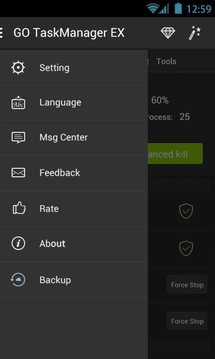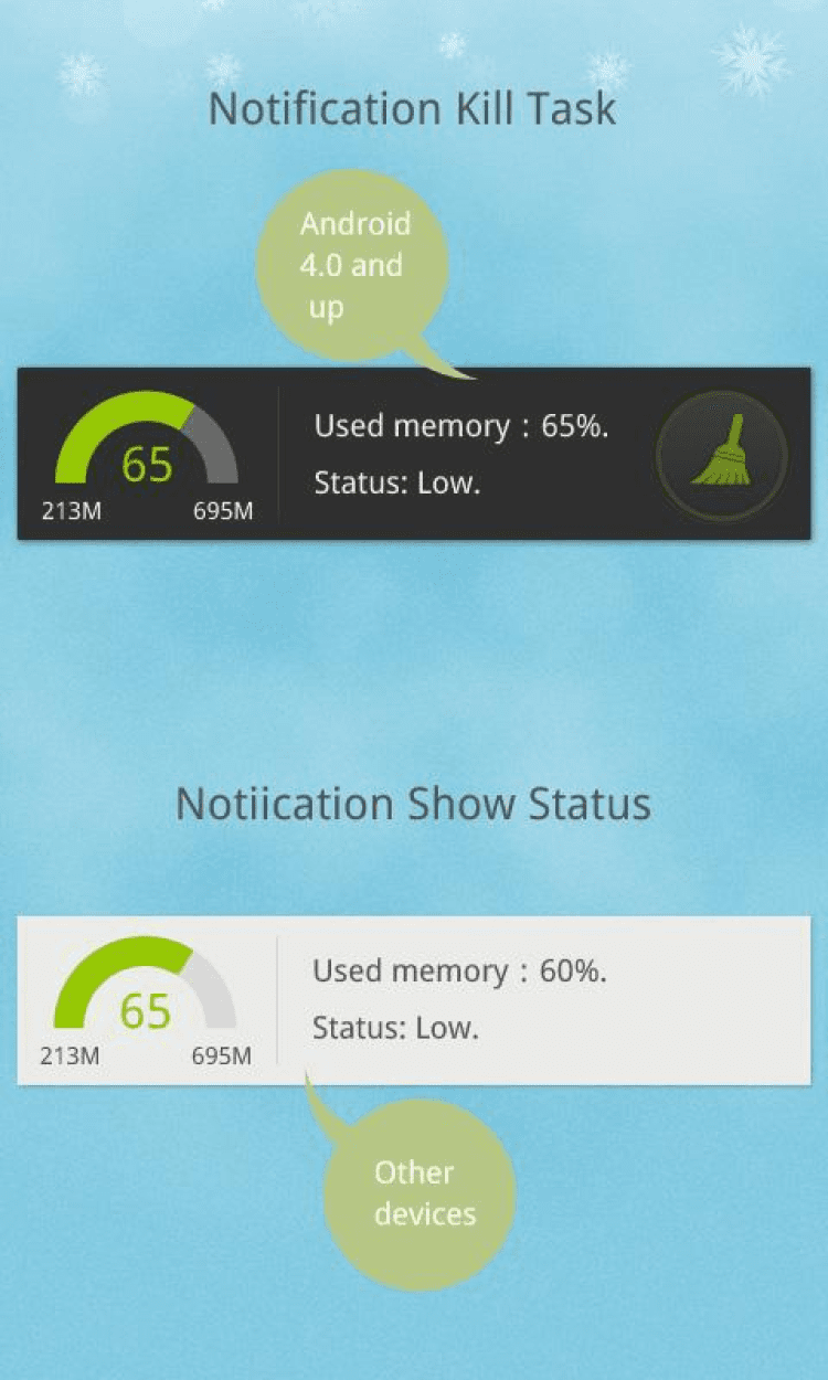 Удобная и мощная программа, которая поможет вам очистить память вашего устройства, завершить фоновые процессы, а так же многое другое. GO Cleaner & Task Manager позволит вам завершать выбранные вами процессы для улучшения быстродействия системы, проверять статус работы устройства, быстро чистить кэш и удалять временные файлы, отслеживать состояние использования мобильной или WiFi сети при помощи виджета, а так же многое другое.