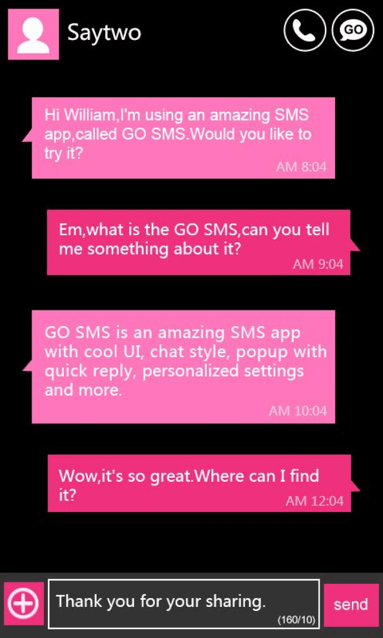 GO SMS Pro WP8 PinK ThemeEX Красивая розовая тема оформления в стиле Windows Phone 8 для приложения GOWidget.
