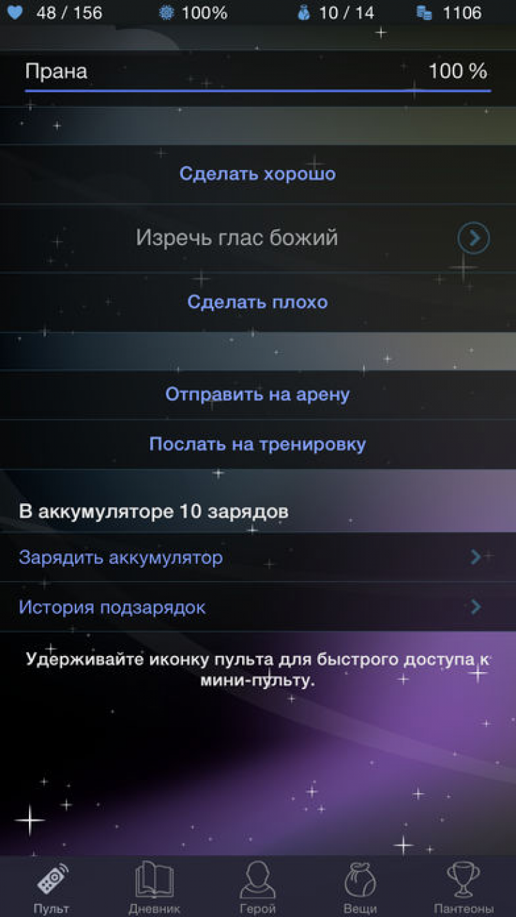 Вам никогда не хотелось почувствовать себя богом? В этой игре необычного жанра ZPG (zero player game) каждый игрок становится божеством и обладателем персонального героя-почитателя, которым НЕ НУЖНО управлять - разве что развлечения ради можно иногда подбадривать его молниями или вещать сверху что-нибудь громогласное. По сути, это пародия на обычные RPG, не докучающая нудной прокачкой персонажа и позволяющая в любую свободную минуту порадоваться новым успехам своего протеже.
